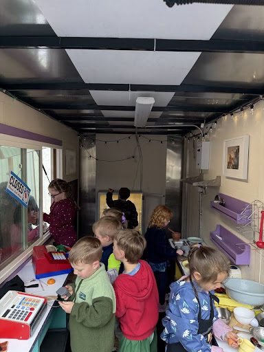 One of the most popular stations was the mobile food truck play kitchen. This space provided a fantastic opportunity for students to see themselves represented while also learning about delicious foods from other cultures. It turned into a wonderful, dramatic play activity where teachers and parent volunteers acted as hungry customers, and the preschoolers took charge of making the food and completing the transactions!